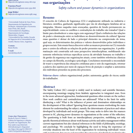 Artigo “Cultura de Segurança e relações de poder nas organizações”