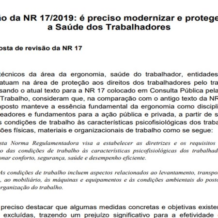 11 de setembro de 201911 de setembro de 2019Ergonomia da Atividade Parecer técnico sobre proposta de alteração da NR17